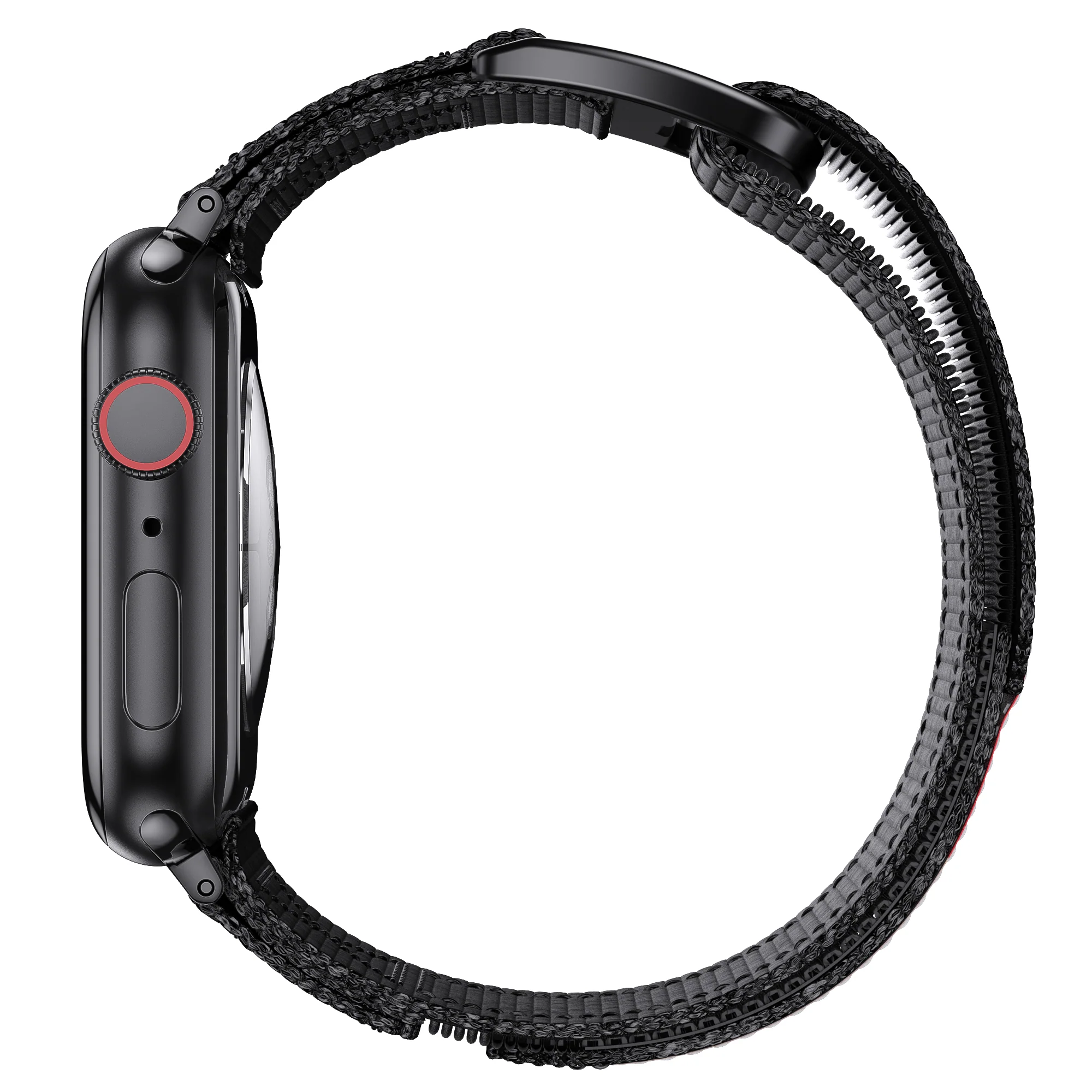 Crafted for all apple watches including Apple Ultra 2 and Series 10 options, this band is engineered to fit your wrist snugly and securely, making it a hassle-free addition to your watch. With its black design, this strap offers a sporty and military-inspired look that stands out without compromising performance.